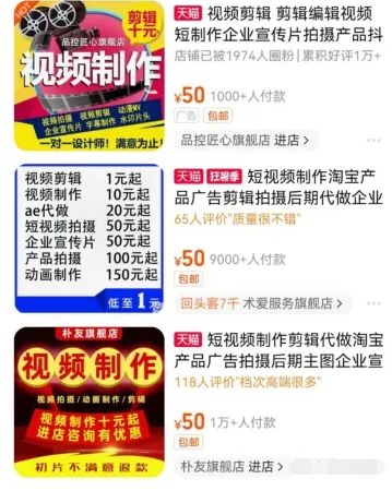 淘宝搜索关键词影视剪辑,马上会跳出来一堆剪辑视频的店铺。